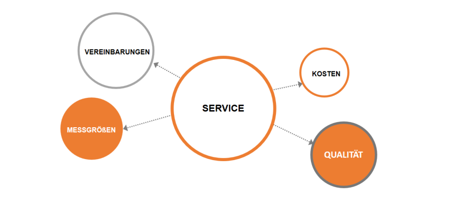 Zu einem Service gehören die Vereinbarung, die Messgrößen, um den Erfüllungsgrad zu messen und die erzeugte Qualität, d.h.